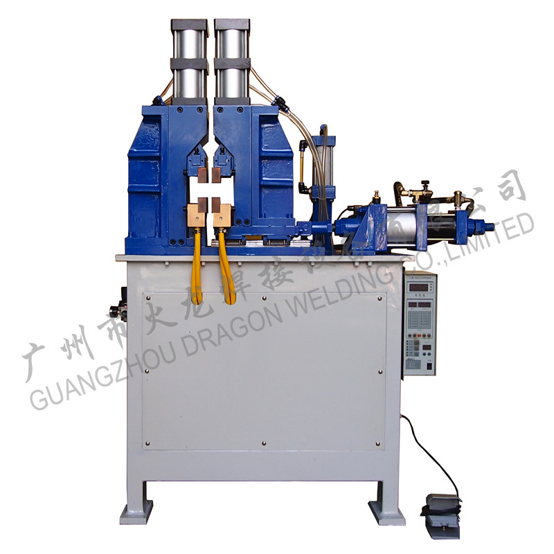 将对接的工件,自动夹紧,再通过气液控制,先通电缓慢推动将工件焊接处表面的氧化和凸起不平处闪光去掉后让焊接的工件端面热塑化,焊接区域变得越来越热,对焊的速度也随着加速,闪光和飞溅使两个接触面完全焊接在一起,.最后再迅速加压顶锻使焊接两端面熔接,切断电流,焊接完成。这种焊接强度高,致密性好,无假焊,无夹渣,无气孔.